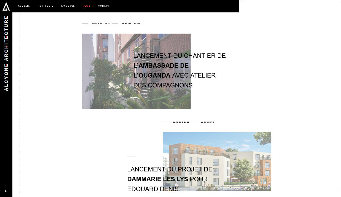 L'agence d'architecture Alcyone Architecture nous a confié la refonte complète de son site vitrine. L’objectif était une meilleure mise en valeur de leurs réalisations et un site plus esthétique, en adéquation avec leur positionnement et leur savoir-faire. Nous avons pris soin de réaliser une belle architecture des pages que vous pourrez découvrir en visitant leur site.