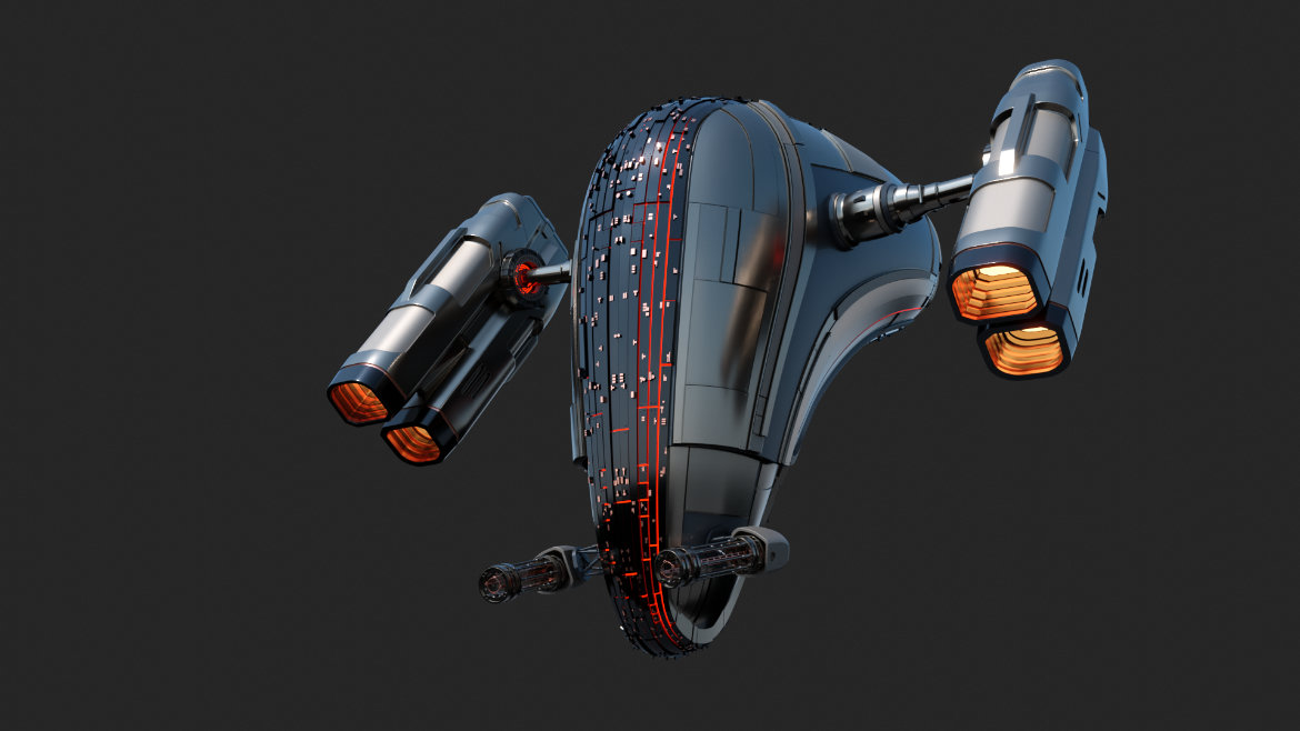 Dans le cadre du projet interne Reminiscence, court métrage de science fiction, nous avons conçu un vaisseau qui a été inspiré par un scorpion pour sa forme et d’un scarabé pour sa couleur. Spécialisé pour faire de la reconnaissance. Il va observer l’environnement avec la possibilité de s’y fondre grâce à une technologie reposant sur le principe du mimétisme.